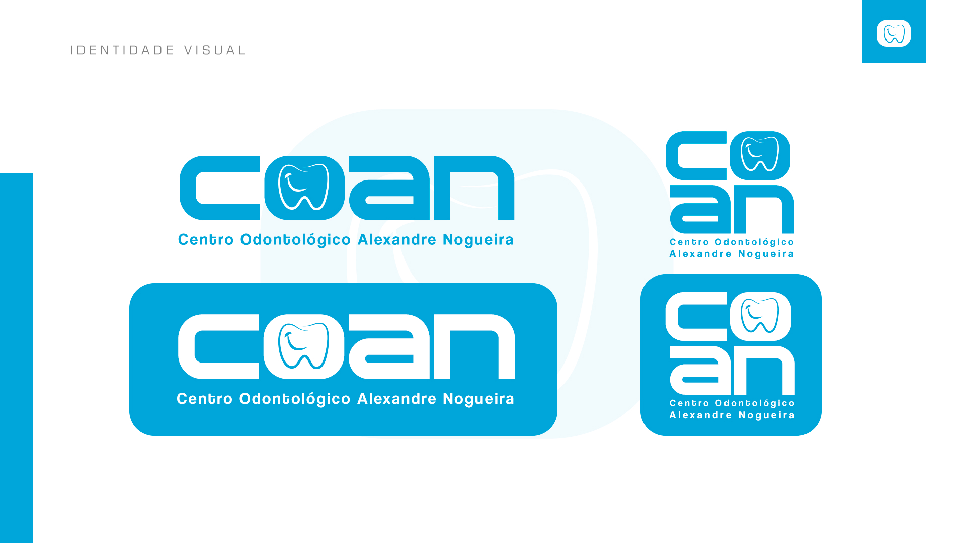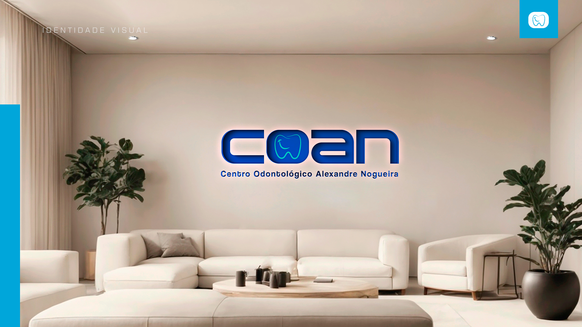 A identidade visual do Centro Odontológico Alexandre Nogueira (COAN), criada com expertise e atenção aos detalhes, busca transmitir confiança, modernidade e acessibilidade, elementos-chave para o sucesso no competitivo mercado de saúde.